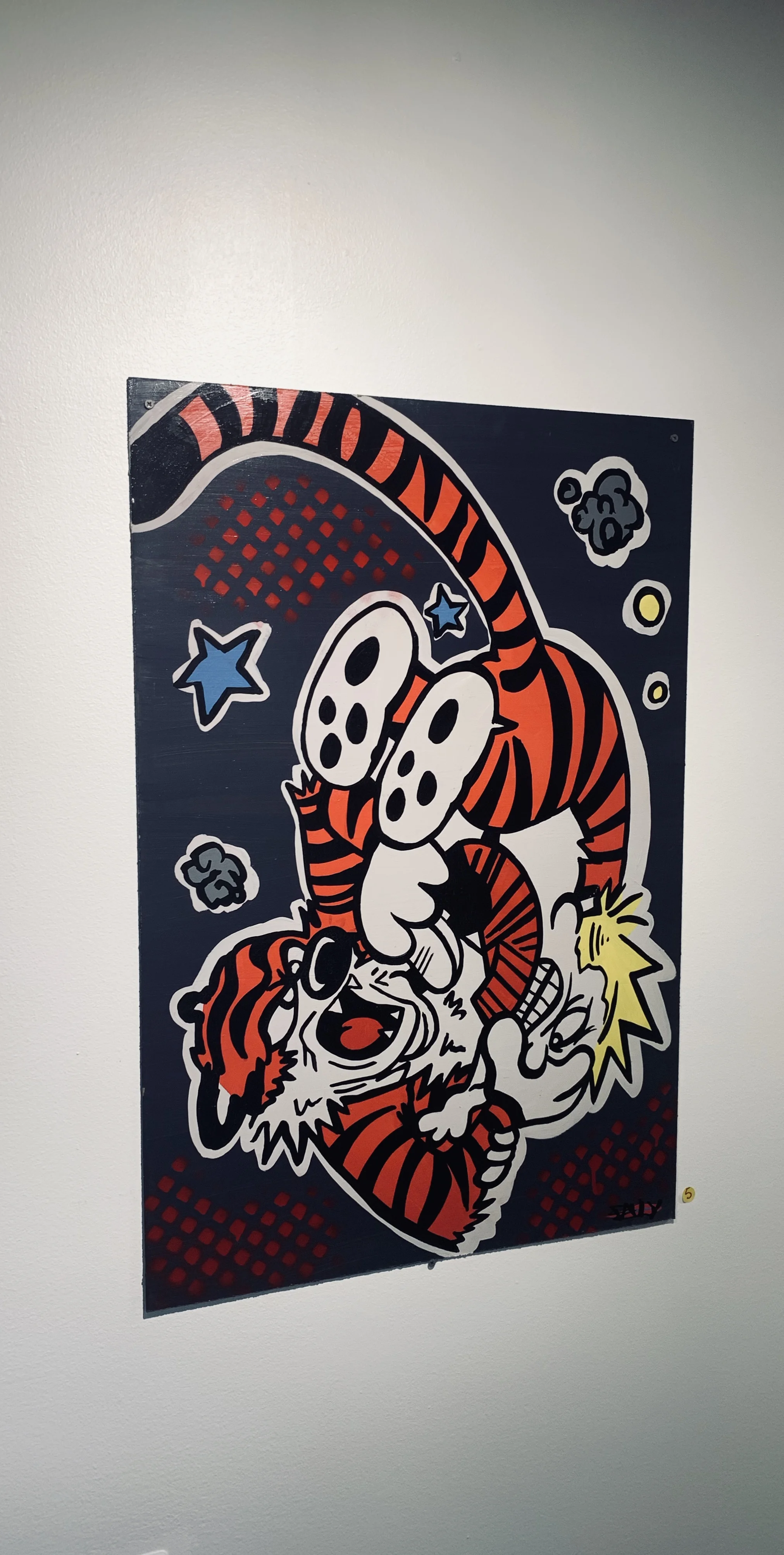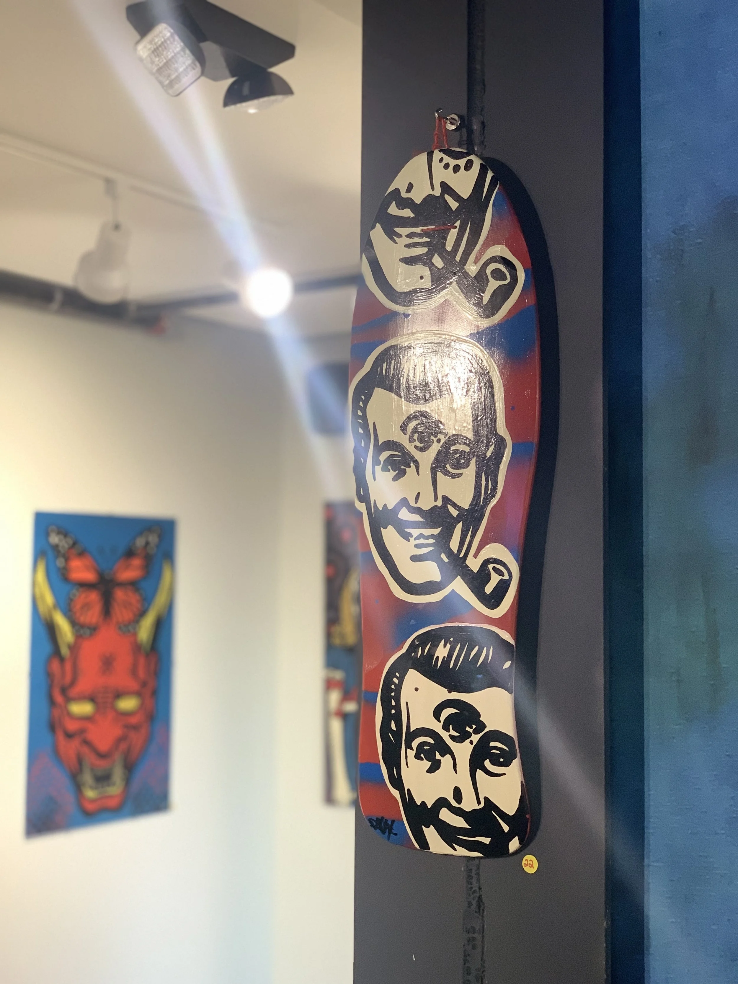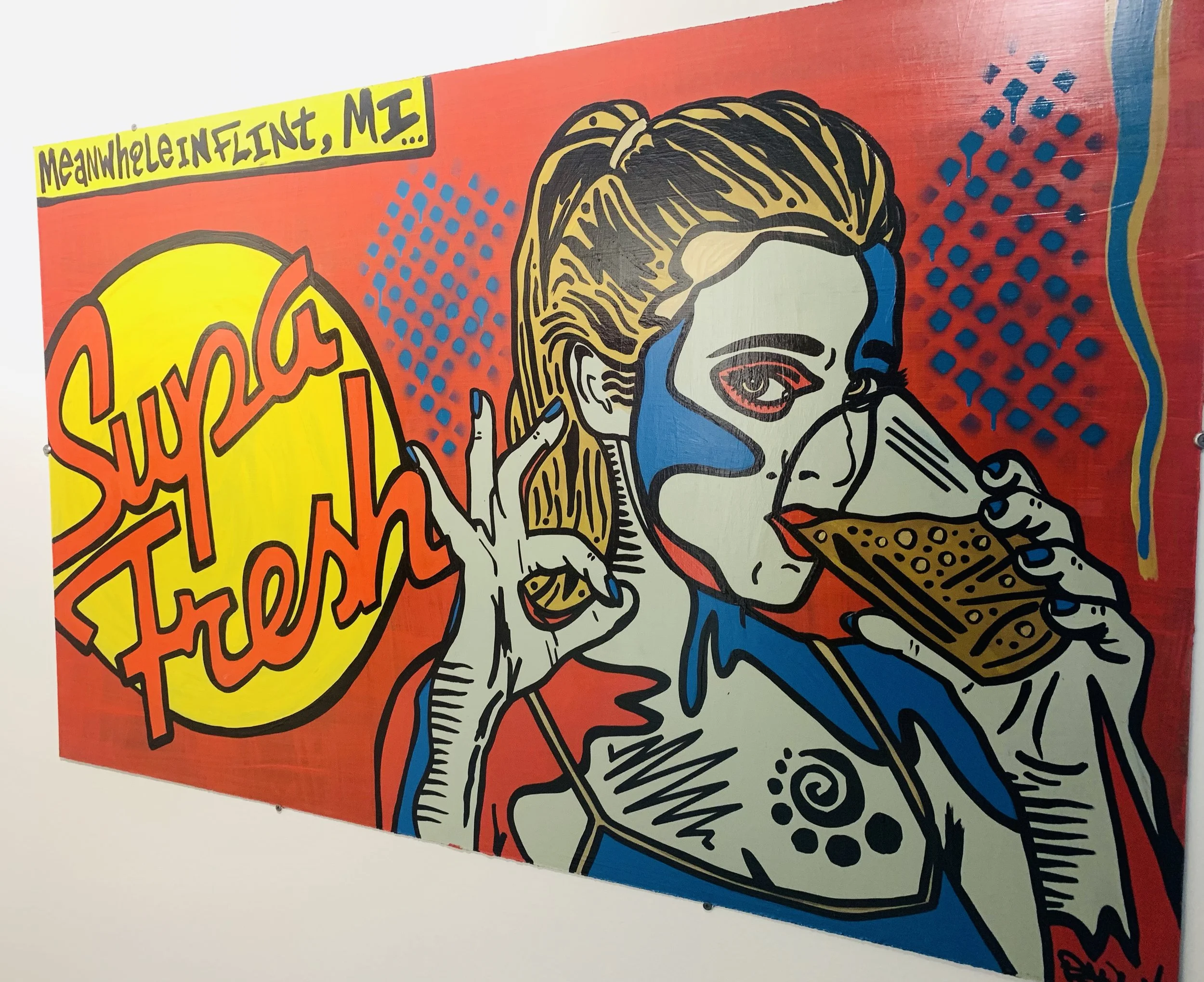 Flint artist Pauly Everett is the bridge gallery’s featured artist. Having seen his work around home, I was excited to see what he’d brought to Detroit. Each piece was bright and abstract, you can definitely see the street art influence. Pauly is known not just for his art, but for empowering kids of Flint and the community as a whole through art and creativity.
